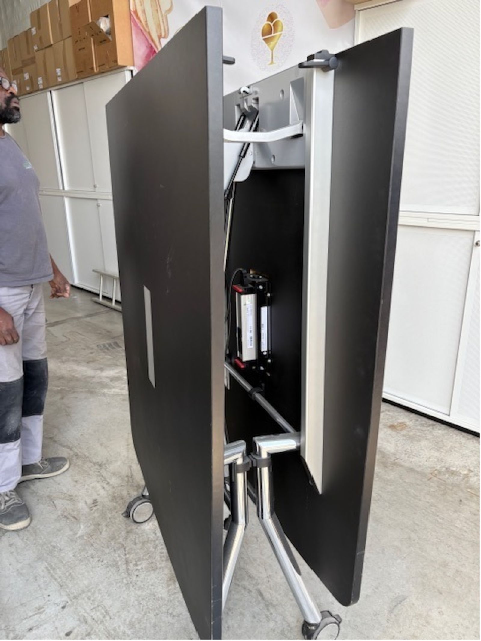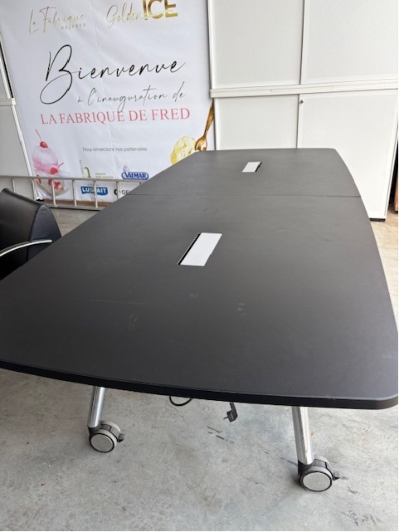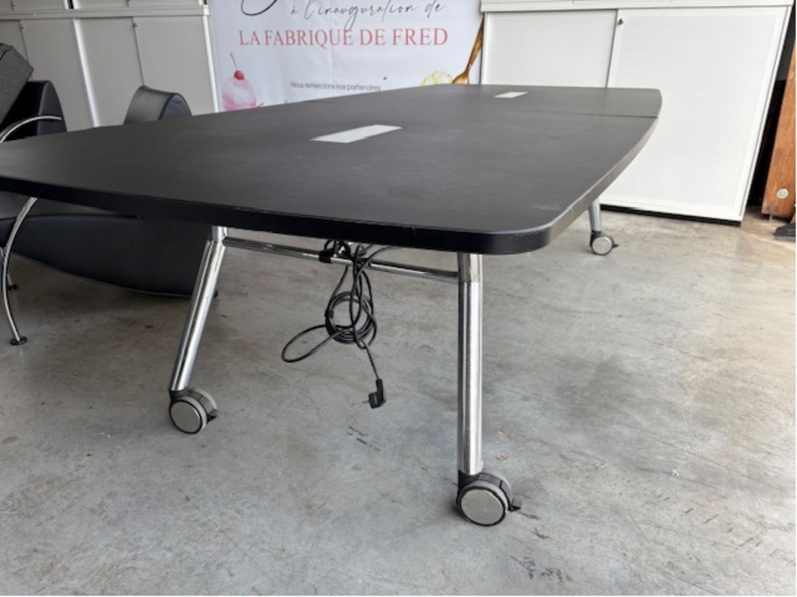 Table de réunion pliante – Noire / Pieds alu / Sur roulettes